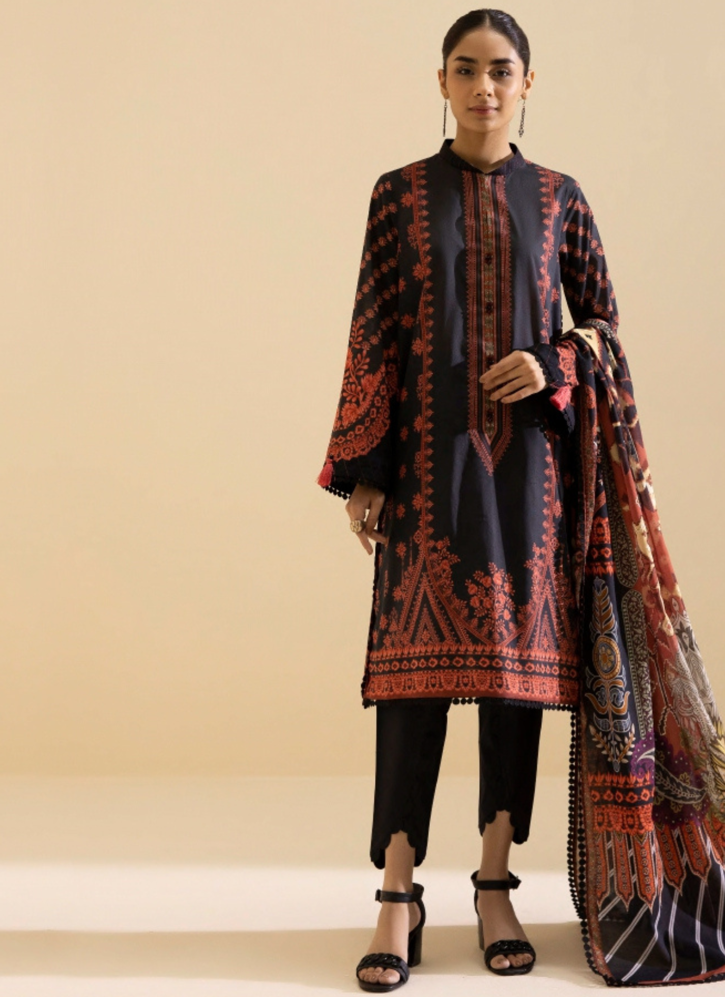 Lightweight and flowy voile dupatta with coordinating prints, adding a graceful flair to your outfit. -