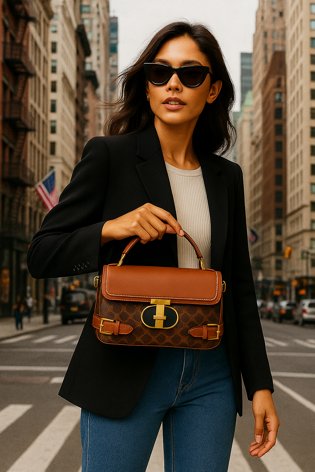 This stylish bag features long straps for comfortable carrying, three inside zipper compartments to keep your essentials organized, and an authentic brand card for added assurance. Crafted from high-quality materials, it offers both durability and elegance for everyday use.